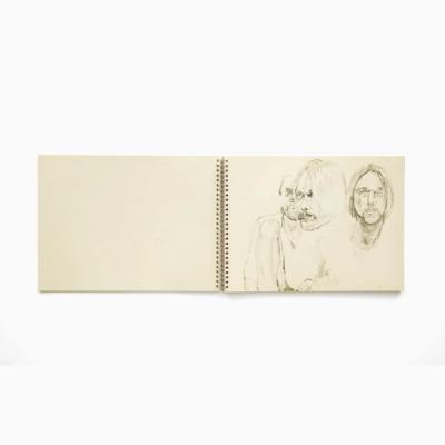 American Art Catalogues presents Paul Thek: Untitled Sketchbook, a facsimile of a notebook from 1969 in which Thek, during his too-brief lifetime, sketched, scribbled, and simmered images and ideas. Featuring thirty-one drawings that have never before been shown publicly, the book is filled with searching self-portraits, likely sketched in a mirror as an act of self-reflection. (“No one has ever interested me quite as much as myself,” he once wrote.) Nearby pages feature images of Christ wearing a crown of thorns alongside strange still lifes: of a crucifix lying next to an empty ashtray, of a mushroom growing what looks like a corkscrew tail, and other of his visions.